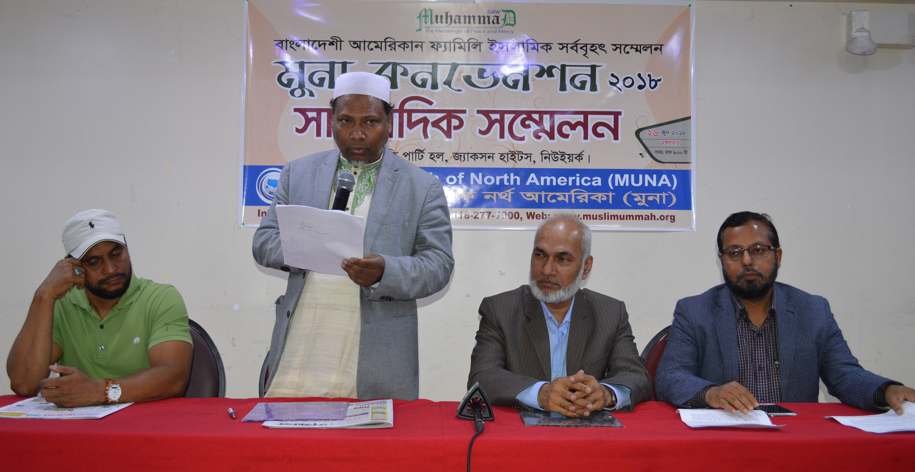 ‘মুনা কনভেনশান-২০১৮’ উপলক্ষ্যে আয়োজিত এক সাংবাদিক সম্মেলনে নেতৃবৃন্দ উপরোক্ত কথা বলেন। সিটির জ্যাকসন হাইটস্থ পালকি সেন্টারে গত ২৬ জুন মঙ্গলবার রাতে এই সাংবাদিক সম্মেলনের আয়োজন করা হয়। এতে লিখিত বক্তব্য পাঠ করেন ও সাংবাদিকদের বিভিন্ন প্রশ্নের উত্তর দেন মুনা কনভেনশনের চেয়ারম্যার আবু আহমেদ নূরুজ্জামান। শেষে সমাপনী বক্তব্য রাখেন মুনা’র ন্যাশনাল এক্সিকিউভিট ডাইরেক্টর হারুন অর রশীদ। এসময় মুনা নিউইয়র্ক জোন নর্থের সভাপতি আব্দুল্লাহ আল আরিফ মঞ্চে উপস্থিত ছিলেন। সাংবাদিক সম্মেলন পরিচালনা করেন মুনা নিউইয়র্ক সাউথ জোন কর্ম পরিষদ সদস্য মাহবুবুর রহমান।