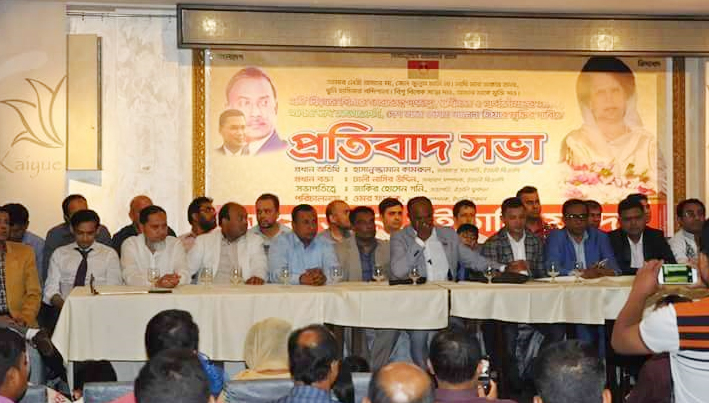 স্মরণ কালের এই প্রতিবাদ সভার সভাপতিত্ব করেন যুব দল ইটালী শাখার সভাপতি জাকির হোসেন গনি। পরিচালনা করেন যৌথ ভাবে যুবদলের সাধারণ সম্পাদক ওমর ফারুক ও যুগ্ম সাধারণ সম্পাদক মোয়াজ্জেম হোসেন মিয়াজী। ইটালীর রাজধানী রোমে পিয়াচ্ছা ভিক্টোরিয়াস্থ একটি চাইনিজ রেস্টুরেন্ট আয়োজিত এই প্রতিবাদ সভার বিশেষ অতিথি হিসেবে বক্তব্য রাখেন ইটালী বিএনপির সহসভাপতি আব্দুর রহমান রবিন, মইনুল আলম খোকন, শাহজাহান তালুকদার, মোঃ জহিরুল আলম, মাসুম বিল্লাহ, হাজী নুরে আলম, আব্দুল কাদের বেপারী, যুগ্ম সাধারণ সম্পাদক শাহ্ মোঃ তৌহিদ কাদের, সাংগঠনিক সম্পাদক কামরুজ্জামান রতন, রোম মহানগর বিএনপির সাধারন সম্পাদক কাজী আবুল বাসার, ইটালী বিএনপির যুগ্ম সাধারণ সম্পাদক আল আমিন বিশ্বাস, সহ সাংগঠনিক সম্পাদক হুমায়ন খান, প্রচার সম্পাদক মৃধা শহিদুল ইসলাম, সহ দপ্তর সম্পাদক বেলাল হোসাইন, শ্রম বিষয়ক মোঃ হোসেন, সমবায় বিষয়ক সম্পাদক কাশেম পাটোয়ারী, প্রকাশনা বিষয়ক সম্পাদক আব্দুল মোতালেব লিটন, সহ প্রকাশনা বিষয়ক সম্পাদক জলিলুর রহমান, রোম মহানগর বি এন পি সিনিয়র সহ সভাপতি সিরাজুল ইসলাম মৃধ্যা, আবু সাইদ।