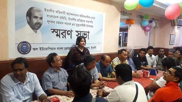 মানুষ চলে গেলেও তাঁর কর্ম তাকে মহীয়ান করে তোলে। তিঁনি হলেন "ইটালীর অভিবাসী আন্দোলনের অবিসংবাদিত নেতা বাংলাদেশ সমিতি ইটালীর প্রতিষ্ঠাতা সভাপতি লুৎফর রহমান খান"। গত ৩০ জুলাই সোমবার ছিল এই নেতার ৯ম মৃত্যু বার্ষিকী। আর এই উপলক্ষে প্রতি বছরের ন্যায় এবারও অল ইউরোপ বাংলা প্রেস ক্লাব ও বাংলা প্রেস ক্লাব ইটালী র আয়োজনে স্পাইস অফ রেস্টুরেন্টের হল রুমে একটি স্মরণ সভার আয়োজন করে।