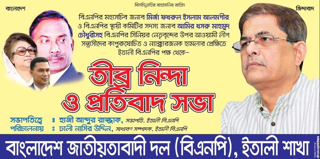 ইতালি বিএনপি’র তীব্র নিন্দা