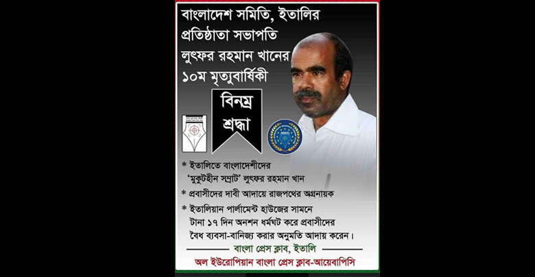 বাংলাদেশ এসোসিয়েশন ইতালির প্রতিষ্ঠাতা সভাপতি লুৎফর রহমান খানের দশম মৃত্যুবার্ষিকী