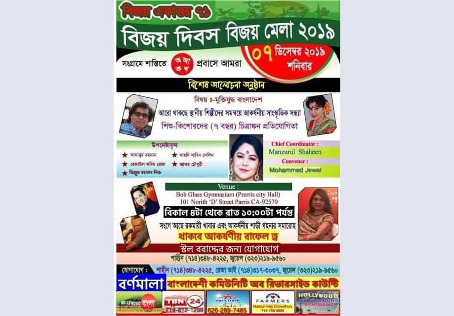 ক্যালিফোর্নিয়ায় ‘বিজয় ৭১’ বিজয় মেলা শনিবার