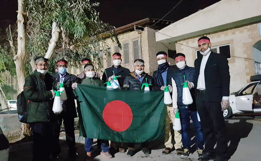 এসময় তাদের হাতে বাংলাদেশের জাতীয় পতাকা দেখতে পাওয়া যায়। করোনা ভাইরাস নির্মূলে এগিয়ে অাসায় স্থানীয় ইরানীদের প্রশংসায় ভাসছেন বাংলাদেশী তরুণরা। উল্লেখ্য, ইরানে প্রতি ঘন্টায় করোনা ভাইরাসে নতুন অাক্রান্ত হচ্ছেন ৪০ জন এবং মারা যাচ্ছেন ৬ জন। এ পর্যন্ত ইরানে করোনা ভাইরাসে অাক্রান্ত ব্যক্তির সংখ্যা প্রায় ১৮ হাজার ৪০৭ জন। মৃত্যু হয়েছে ১২৮৪ জনের অার করোনা ভাইরাস অাক্রান্ত রোগী সুস্থ হয়েছেন ৫৭১০ জন।