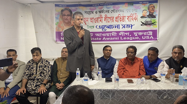 অনুষ্ঠানের প্রধান অতিথি যুক্তরাষ্ট্র আওয়ামী লীগের সভাপতি ড. সিদ্দিকুর রহমানসহ অন্যান্য বক্তারা তাদের বক্তব্যে বলেন বাংলাদেশ আওয়ামী লীগ। স্বাধীনতা সংগ্রামের নেতৃত্বদানকীর দল। দলটির ৭২তম প্রতিষ্ঠাবার্ষিকী আজ। ১৯৪৯ সালের ২৩ জুন পুরান ঢাকার ঐতিহ্যবাহী রোজ গার্ডেনে পূর্ব পাকিস্তান আওয়ামী মুসলিম লীগ প্রতিষ্ঠার মধ্য দিয়ে এই রাজনৈতিক দলটি প্রতিষ্ঠিত হয়। প্রতিষ্ঠা সভাপতি মওলানা আবদুল হামিদ খান ভাসানী ও সাধারণ সম্পাদক শামসুল হক। ওই সময় জাতির জনক বঙ্গবন্ধু শেখ মুজিবুর রহমান কারাগারে আটক ছিলেন। তাকে যুগ্ম সাধারণ সম্পাদক করা হয়।