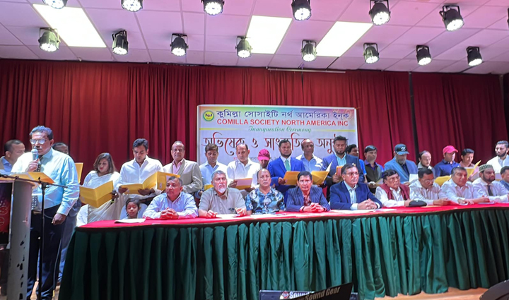 বর্ণাঢ্য আয়োজনে অভিষিক্ত হলেন কুমিল্লা সোসাইটি নর্থ আমেরিকার নবনির্বাচিত কমিটির নেতৃবৃন্দ। এ উপলক্ষ্যে রোববার (২১ আগষ্ট) সিটির উডসাইডস্থ কুইন্স প্যালেসে এক অনুষ্ঠানের আয়োজন করা হয়। কাজী আসাদুল্লাহ’র সভাপতিত্বে আয়োজিত অনুষ্ঠানে প্রধান অতিথি ছিলেন বিশিষ্ট ব্যবসায়ী ও রাজনীতিক গিয়াস আহমেদ এবং উদ্বোধক ছিলেন কুমিল্লা দক্ষিণ জেলা বিএনপি’র সদস্য সচিব হাজী জসিম উদ্দিন।