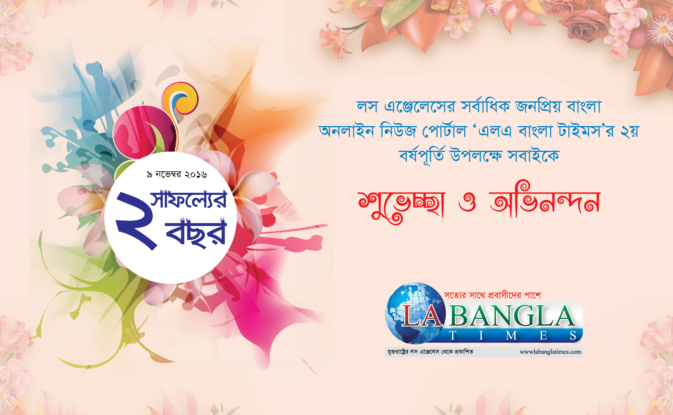 আজ ‘এলএ বাংলাটাইমস’র ২য় প্রতিষ্ঠাবার্ষিকী