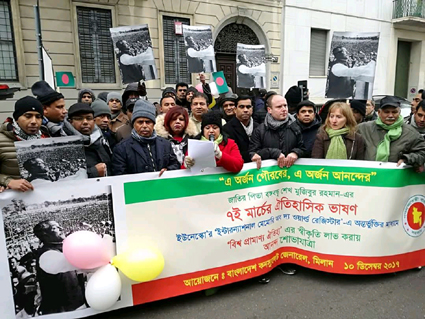 ৭ মার্চের ভাষণের ঐতিহাসিক স্বীকৃতিতে মিলানে আনন্দ শোভাযাত্রা অনুষ্ঠিত