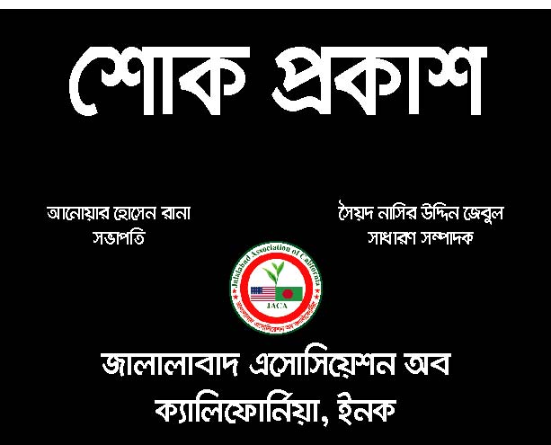 জালালাবাদ এসোসিয়েশন অব ক্যালিফোর্নিয়া’র কালচারাল সেক্রেটারি লায়েক আহমেদের বড় বোন মিসেস সুফিয়া বেগম-এর মৃত্যুতে গভীর শোক ও প্রকাশ করেছেন এসোসিয়েশনের নেতৃবৃন্দ।