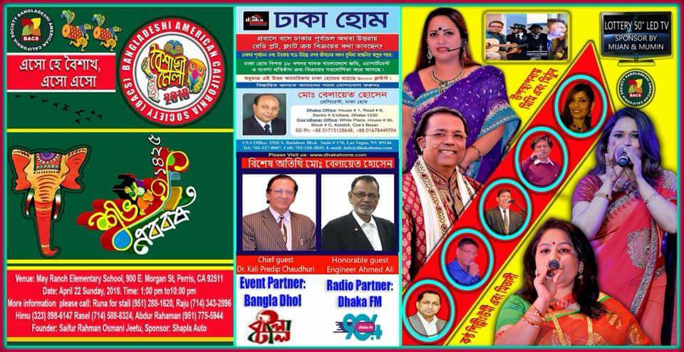 বাংলাদেশী আমেরিকান ক্যালিফোর্নিয়া সোসাইটির বৈশাখী মেলা ২২ এপ্রিল