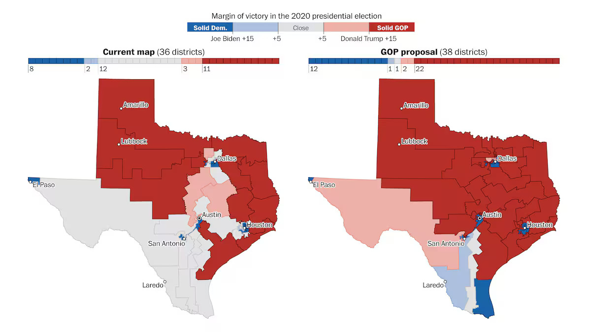 টেক্সাস অঙ্গরাজ্যের আইনপ্রণেতারা নতুন কংগ্রেসনাল মানচিত্র অনুমোদন করেছেন, যা আগামী নির্বাচনে রিপাবলিকানদের এগিয়ে রাখবে বলে ধারণা করা হচ্ছে।
