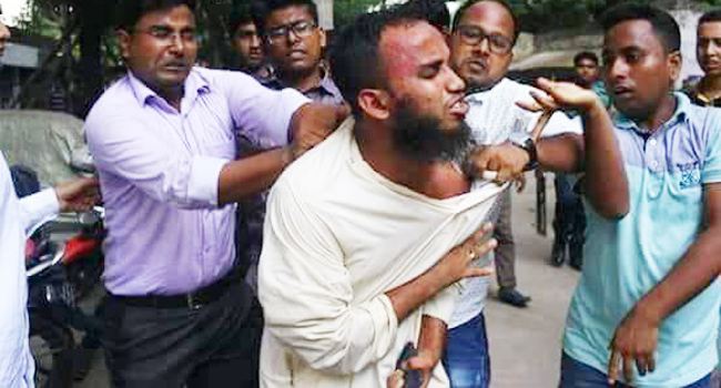 মাওলানা মুফতি মুহাম্মদ হুজাইফাকে শাহবাগে মারধোর করা হচ্ছে - সংগৃহীত
