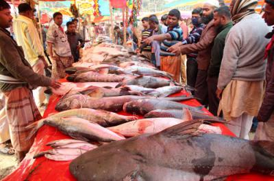 সাতসকালেই ইছামতী নদীর তীরে মানুষের ঢল। এখানে বসেছে ঐতিহ্যবাহী মাছের মেলা। দূরদূরান্ত থেকে দল বেঁধে লোকজন মেলায় ছুটে আসেন। মেলা উপলক্ষে আশপাশের ৩০ গ্রামে রীতিমতো উৎসবের আমেজ। গৃহস্থ ঘরে নাইওর এসেছেন নববধূ আর মেয়েজামাই।এবারও মেলায় উঠেছে বাগাড়, পাঙাশ, চিতল, কাতল, সিলভার কার্পসহ বড় বড় মাছ। ব্যবসায়ী মাসুদ রানা মেলায় বিক্রি করতে এনেছেন ৯০ কেজি ওজনের একটি বাগাড়। দাম হাঁকা হয়েছে সোয়া লাখ টাকা। মাসুদ রানা বলেন, কয়েক দিন আগে যমুনায় জেলেদের জালে মাছটি ধরা পড়ে। শেষ পর্যন্ত সেটি বিক্রি হয় প্রায় ৮৬ হাজার টাকায়।ব্যবসায়ী সাহেব আলী বিক্রি করতে এনেছেন ৭০ কেজি ওজনের আরেকটি বাগাড়। তিনি দাম হাঁকছেন এক লাখ টাকা। কয়েকজন ক্রেতা ভাগাভাগি করে সেটি ৭০ হাজার টাকায় কিনে নেন।বাসেদ আলী নামে এক ব্যবসায়ী ৪০ কেজি ওজনের পাঙাশ বিক্রি করতে এসেছেন। তিনি বলেন, অন্যবার এ মেলায় বড় মাছের কদর ছিল বেশি, এবার ছোট মাছ বেশি বিক্রি হচ্ছে। তবে সন্ধ্যা সাড়ে ছয়টা পর্যন্ত ৪০ কেজি ওজনের একটি পাঙাশ মাছ বিক্রি হয়নি।নাটোরের সিংড়া থেকে ২৫ কেজি ওজনের কয়েকটি কাতলা মাছ বিক্রি করতে এসেছেন ব্যবসায়ী আসলাম হোসেন। তিনি বলেন, ‘হরতাল-অবরোধে এবার মেলা ঠিকমতো জমেনি। পথে পথে অনেক কষ্ট করে হরতালে মেলায় এসেছি। বিক্রি না হলে লোকসান দিতে হবে।’ গতকাল বুধবার বগুড়ার গাবতলী উপজেলার ঐতিহ্যবাহী পোড়াদহ মেলার দৃশ্য ছিল এমনটা।গোলাবাড়ী গ্রামের প্রবীণ আবদুর রহমানসহ সাত-আটজন বলেন, প্রায় ৪০০ বছর ধরে মহিষাবান ইউনিয়নের গোলাবাড়ী বন্দরে ইছামতী নদীর তীরে প্রতি মাঘ মাসের শেষ বুধবারে একটি বটবৃক্ষতলে বসে এই মেলা। নদীতে ধরা বিশাল আকৃতির মাছ ছাড়াও এবারের মেলায় অন্যতম আকর্ষণ ছিল ১৫ কেজি ওজনের রসে ভাষা ‘বালিশ মিষ্টি’।মেলায় এবারও উঠেছে ১০ থেকে ১৫ কেজি ওজনের বড় বড় মিষ্টি। ঘন রসে ভাসা এ মিষ্টির স্থানীয় নাম ‘বালিশ মিষ্টি’। মিষ্টি ব্যবসায়ী বাদশা মিয়া বলেন, এই মেলার আকর্ষণ বড় মিষ্টি। এই মিষ্টি বিক্রি করা হচ্ছে প্রতিকেজি ২০০ টাকা। কিন্তু এবার মেলায় লোক সমাগম কম হওয়ায় বড় মিষ্টির ক্রেতাও কম।সকাল থেকেই শিশু-কিশোরদের ভিড়ে সরগরম হয়ে উঠেছিল মেলা। শিশুরা নাগরদোলায় চড়ে, হরেক খেলনা আর রঙিন বেলুন কিনে আনন্দ-ফুর্তি করে। মেলায় উঠেছিল আসবাব, গৃহস্থালির প্রয়োজনীয় নানা সামগ্রী, মসলাসহ হরেক রকম পণ্য।গোলাবাড়ী গ্রামের আবদুল জোব্বার বলেন, মেলা উপলক্ষে নববধূরা নাইওর আসেন শ্বশুরবাড়ি। বাবার বাড়িতে নাইওর আসেন মেয়েজামাই। এক দিন আগে থেকেই সাজ সাজ রব পড়ে যায় চারদিকে। মেলা উপলক্ষে আত্মীয়স্বজনের দাওয়াত খাওয়ানো এখন এই এলাকার মানুষের সামাজিক রীতিতে পরিণত হয়েছে।
