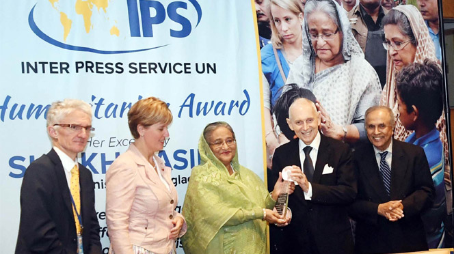 প্রধানমন্ত্রী সাংবাদিকতার অঙ্গনে অনেক অবদানের জন্য ইন্টার প্রেস সার্ভিসকে ধন্যবাদ জানান। তিনি বাংলাদেশের সরকার ও জনগণকে সম্মানিত করার জন্য গ্লোবাল হোপ কোয়ালিশন ও এর অবৈতনিক প্রেসিডেন্ট ইরিনা বোকোভাকে আন্তরিক কৃতজ্ঞতা জানান।