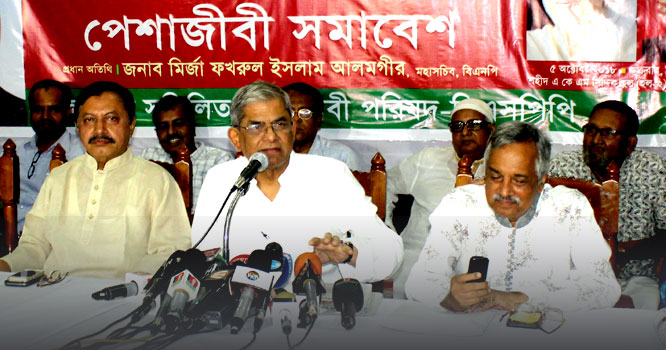সরকার জনগণ থেকে বিচ্ছিন্ন হয়ে শুধু রাষ্ট্রযন্ত্রের ওপর নির্ভর করে দেশ চালাচ্ছে মন্তব্য করে বিএনপির মহাসচিব মির্জা ফখরুল ইসলাম আলমগীর বলেছেন, নির্বাচনের আগেই সরকার দলের শীর্ষ নেতাদের মামলা দ্রুততার সাথে শেষ করার ষড়যন্ত্র করছে। শুক্রবার বিকেলে পেশাজীবীদের এক সমাবেশে তিনি প্রধান অতিথির বক্তব্যে বলেন, দেশে এখন কোনো আইনের শাসন নেই।