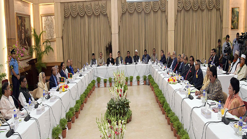 বক্তব্যের শুরুতে সংলাপে অংশ নেওয়ায় সবাইকে ধন্যবাদ জানান আওয়ামী লীগ সভাপতি।