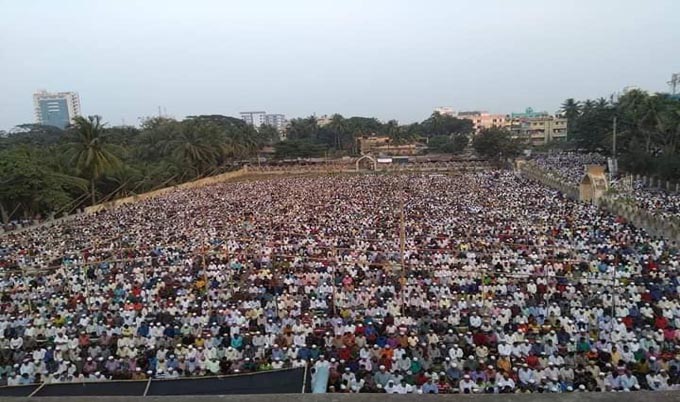 মানুষের স্রোত বাড়তে থাকায় এক পর্যায়ে মাইকে ঘোষণা দেওয়া হয়, ‘একই স্থানে দ্বিতীয় জানাজা হবে। আপনারা যারা প্রথম জানাজায় অংশ নিতে পারছেন না, তারা দ্বিতীয় জানাজায় অংশ নেবেন।’
