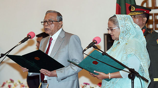 এরপর তিনি সংবিধানের আলোকে প্রথমে প্রধানমন্ত্রীর শপথ পরিচালনার দায়িত্ব দেন রাষ্ট্রপতিকে। তিনি শেখ হাসিনাকে প্রথমে প্রধানমন্ত্রী পদের, পরে গোপনীয়তার শপথ পাঠ করান।