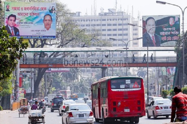যত্রতত্র বিলবোর্ড-পোস্টার লাগিয়ে সিটি কর্পোরেশন নির্বাচনের আগামপ্রচার চললেও তফসিল ঘোষণার আগে সেইবিষয়ে কোনো পদক্ষেপ নিতে অপারগতা জানালনির্বাচন কমিশন। এক্ষেত্রে কিছু করার নেইজানিয়ে ব্যবস্থা নেওয়ার দায়িত্ব আইনশৃঙ্খলা বাহিনীর ওপর ঠেলে দিয়েছেন নির্বাচনকমিশনার মো. শাহনেওয়াজ।তিনি বলেছেন, তফসিল ঘোষণারমাধ্যমে প্রার্থী হওয়ার পরনির্বাচনী ব্যয়ে আগাম খরচেরবিষয়টি অন্তর্ভুক্ত করতে হবে সংশ্লিষ্টব্যক্তিদের।ঢাকা ও চট্টগ্রামসিটি নির্বাচনকে সামনে রেখে সম্ভাব্যপ্রার্থীদের পোস্টার-বিলবোর্ডে এরইমধ্যে ছেয়ে গেছে দুই নগরী।যত্রতত্র পোস্টার কিংবা দেওয়াল লিখনঠেকাতে একটি আইন ২০১২ সালে প্রণীত হয়েছে।ওই আইনে আবার নির্বাচনের সময় ইসিরএখতিয়ারের বিষয়টিও রয়েছে।এতে সংসদ বাদে অন্য নির্বাচনেরবিষয়ে বলা হয়েছে, ইসি পরিচালিত এসবনির্বাচনের ক্ষেত্রে পরিচালনাকারী কর্তৃপক্ষ ওসংশ্লিষ্ট স্থানীয় কর্তৃপক্ষের অনুমোদননিয়ে নির্ধারিত শর্তে দেওয়াল লিখনবা পোস্টার লাগানো যাবে।তবে এক্ষেত্রে অনুমোদিত পোস্টার বা দেওয়াললিখন নির্বাচন শেষ হওয়ার ১৫ দিনেরমধ্যে মুছে ফেলতে হবে।তবে তফসিল ঘোষণার পরই কেবল আইনবলে ইসি এই বিষয়ে ক্ষমতা প্রয়োগকরতে পারে বলে নির্বাচন কমিশনারশাহনেওয়াজ জানান।তিনি রোববার সাংবাদিকদের বলেন, “তফসিলেরআগে যারা প্রচারণা করছেন, তাদেরনজরদারি করবে আইন শৃঙ্খলা বাহিনী। এমুহূর্তে ইসির আইনে তা কভার করছে না।”আইন অনুযায়ী, নির্ধারিত স্থান ছাড়া অন্যকোথাও দেওয়াল লিখন ও পোস্টারলাগানো হলে সর্বোচ্চ ৫০ হাজারটাকা জরিমানা, অনাদায়ে সর্বোচ্চ ৩০ দিনেরবিনাশ্রম কারাদণ্ড হবে। ভ্রাম্যমাণ আদালতেরমাধ্যমেও এ অপরাধের বিচার করা যাবে।তফসিল ঘোষণার পর থেকে আচরণবিধি প্রয়োগকরবে ইসি। নির্বাচনী আচরণবিধিতে প্রতীকবরাদ্দের পর প্রার্থীদের প্রচারের বিধানরয়েছে।ইসি কর্মকর্তারা জানান, প্রার্থীদের আগামপ্রচারে কমিশন অনেকটাই অসহায়। এবিষয়ে প্রার্থীদের পোস্টার-বিলবোর্ডসরিয়ে ফেলতে অনুরোধই কেবল জানাতে পারেনতারা।তফসিল ঘোষণার পরও আগাম প্রচারণামূলকপোস্টার-বিলবোর্ডথাকলে তা নজরদারিতে এনে ব্যবস্থা নেওয়া হবে জানিয়ে শাহনেওয়াজবলেছেন, প্রার্থী হলে সংশ্লিষ্টদের আগামপ্রচারণার এই খরচও দেখাতে হবে।ঢাকা উত্তর সিটি কর্পোরেশনে মেয়রপ্রার্থীরা ২৩ লাখ ভোটারের জন্য সর্বোচ্চ ৫০লাখ টাকা এবং ঢাকা দক্ষিণ ও চট্টগ্রামে ১৮লাখের বেশি ভোটারের জন্য সর্বোচ্চ ৩০ লাখটাকা ব্যয়ের সীমা নির্ধারণ করা হয়েছে।কাউন্সিলররা ভোটার ভেদে সর্বোচ্চ ছয় লাখটাকা ব্যয় করতে পারবেন।নির্বাচনী ব্যয়সীমা লঙ্ঘন হলে সংশ্লিষ্টদেরবিষয়ে ব্যবস্থা নেওয়ার হুঁশিয়ারিও দেননি