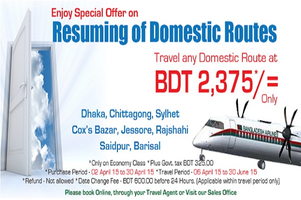 অভ্যন্তরীণ রুটে বাংলাদেশ বিমানের টিকেট অর্ধেক দামে - যে কোন রুটে ২৩৭৫ টাকা