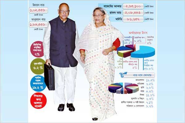 ৮৩-তেও নবীন অর্থমন্ত্রী : এর আগে গতকাল বিকেলে সংসদে সরকার ও বিরোধী দলের উপস্থিতিতে উৎসবমুখর পরিবেশে অর্থমন্ত্রী আবুল মাল আবদুল মুহিত নতুন অর্থবছরের বাজেট প্রস্তাব তুলে ধরেন। তার আগে সংসদ ভবনের কেবিনেট কক্ষে প্রধানমন্ত্রী শেখ হাসিনার সভাপতিত্বে অনুষ্ঠিত মন্ত্রিপরিষদের বিশেষ সভায় বাজেট অনুমোদন দেন মন্ত্রীরা। সংসদ সদস্যদের আলোচনা ও সর্বস্তরের মানুষের মতামত পর্যালোচনা শেষে ৩০ জুন বাজেট পাস করে ১ জুলাই থেকে কার্যকর হবে।