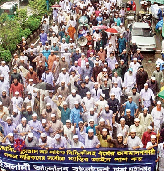 বৃহত্তম মুসলিম দেশ বাংলাদেশের বৃহত্তর ইসলামী জনতার প্রাণের দাবি ইসলামের বিরুদ্ধে