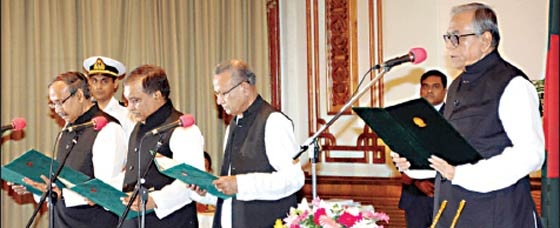 প্রধানমন্ত্রী শেখ হাসিনা। শপথ অনুষ্ঠান পরিচালনা করেন মন্ত্রিপরিষদ সচিব মোশাররাফ হোসেন