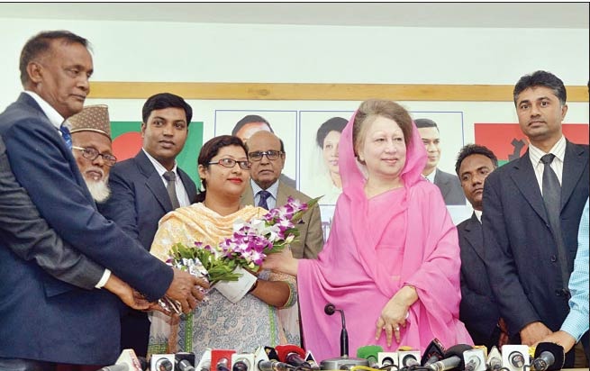 হাসিনার অধীনে নয়, নিরপেক্ষ সরকারের অধীনেই নির্বাচন হতে হবে বলে জানিয়েছেন বেগম খালেদা জিয়া। তিনি বলেছেন, ব্রাহ্মণবাড়িয়ার আইনজীবীদের অনুষ্ঠানে আমি বলেছিলাম, আমরা নির্বাচন চাই, নির্বাচনে অংশগ্রহণ করতে চাই। সেই নির্বাচন হতে হবে নিরপেক্ষ সরকারের অধীনে। এটা পরিষ্কার। তিনি বলেন, এটাকে কোনো কোনো পত্রিকায় নানাভাবে অপব্যাখ্যা দিয়েছে। এটা নিয়ে কোনো একটি পত্রিকা বিভ্রান্তি ছড়িয়েছে। দৈনিক ইত্তেফাকের কথা উল্লেখ করেন তিনি। বলেন, আমাদের অবস্থানের কোনো পরিবর্তন হয়নি। আমরা পরিষ্কার ভাষায় বলছি, হাসিনা মার্কা সরকারের অধীনে কোনো নির্বাচনে জনগণ ভোট দেয়ার সুযোগ পাবে না। তাই আজও বলছি, নিরপেক্ষ সরকারের অধীনে নির্বাচন হতে হবে, সেই নির্বাচনেই বিএনপি অংশগ্রহণ করবে। আগামীতে নির্বাচনের মাধ্যমে সরকার গঠন করে ‘নতুন ধারা’ রাজনীতির সূচনা করে দেশ পরিচালনা করবে বলে জানান বিএনপি নেত্রী।গতরাতে গুলশানে নিজ কার্যালয়ে রাজশাহী জেলা আইনজীবী সমিতির নবনির্বাচিত নেতৃবৃন্দসহ আইনজীবীদের সঙ্গে এক মতবিনিময় সভায় তিনি একথা বলেন।সভার শুরুতে জেলা আইনজীবী সমিতির নির্বাচিত সভাপতি নাজমুস সাদাত, সাধারণ সম্পাদক জমসেদ আলী, সহ-সভাপতি মিজানুর রহমানের নেতৃত্বে আইনজীবীরা খালেদা জিয়াকে ফুলের তোড়া দিয়ে শুভেচ্ছা জানান। এই নির্বাচনে জাতীয়তাবাদী প্যানেল ২১ জনের মধ্যে ১৭ জন বিজয়ী হন। এর আগে ব্রাহ্মণবাড়িয়া আইনজীবী সমিতির নবনির্বাচিত নেতৃবৃন্দের সাথে মতবিনিময় করেন। ওই সভায় খালেদা জিয়া বলেছিলেন, আমরা বলছি না তত্ত্বাবধায়ক সরকারই থাকতে হবে, নাম যাই হোক তা নির্দলীয় হতে হবে। গত কয়েকদিনে একাধিক জাতীয় দৈনিক বিএনপি চেয়ারপারসনের বক্তব্যকে ভুল ব্যাখ্যা দিয়ে দলীয় নেতা-কর্মীসহ রাজনৈতিক অঙ্গনে ঝড় তুলে। পত্রিকায় প্রকাশিত হয়েছে বিএনপি ‘তত্ত্বাবধায়ক’ অবস্থান থেকে সরে এসেছে। অবশ্য বিএনপির সিনিয়র নেতারা এর অভিযোগ করে বলেছেন, সরকারের তলপিবাহক কিছু মিডিয়া এবং সংস্থা দুরভিসন্ধিমূলকভাবে অপপ্রচার করছে। এর পরিপ্রেক্ষিতেই নেতা-কর্মীদের বিভ্রান্তি কাটাতে বক্তব্য রাখলেন বিএনপি প্রধান।তিনি বলেন, আমরা বলতে চাই, আমরা রাজনীতিতে পরিবর্তন আনতে চাই। রাজনীতিতে গুণগত পরিবর্তন আনতে চাই। আমাদের প্রতিশোধ ও প্রতিহিংসার রাজনীতি ভুলে যেতে হবে। শহীদ জিয়ার বিএনপি এ ধরনের রাজনীতিতে বিশ্বাস করে না। আমরা চাই উন্নয়নের রাজনীতি, জনগণের কল্যাণ ও সুশাসনের রাজনীতি। সেজন্য আগামী দিনে আমাদের সুযোগ এলে সেই ধারার রাজনীতির সূচনা করব।দেশের জনপ্রশাসন, পুলিশ ও বিভাগ দলীয়করণের জন্য সরকারের কঠোর সমালোচনা করেন বিএনপি চেয়ারপারসন। আওয়ামী লীগের কোনো জনসমর্থন নেই। তারা ভর করে আছে প
