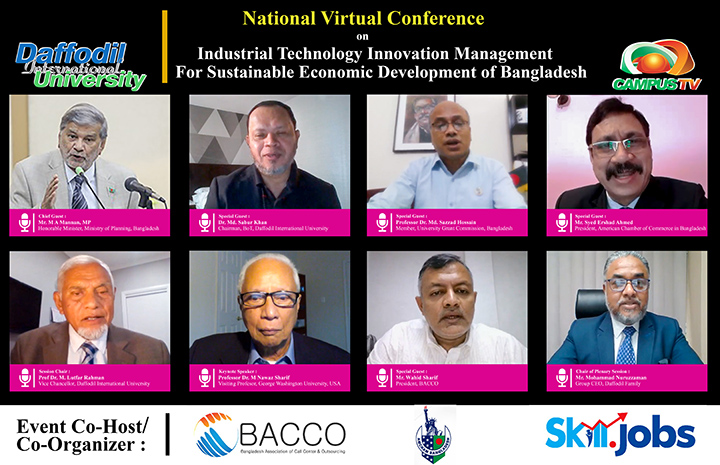 ড্যাফোডিল ইন্টারন্যাশনাল ইউনিভার্সিটি ও স্কিল জবসের যৌথ আয়োজনে ‘ইন্ডাস্ট্রিয়াল টেকনোলজি ইনোভেশন ম্যানেজমেন্ট ফর সাসটেইনেবল ইকনোমিক ডেভলপমেন্ট অব বাংলাদেশ’ শীর্ষক এক ন্যাশনাল ভার্চুয়াল কনফারেন্স শনিবার (২৬ সেপ্টেম্বর) ভাচুর্য়াল প্লা্যটফর্মে অনুষ্ঠিত হয়েছে। এতে সহযোগিতা করেছে আমেরিকান চেম্বার অব কমার্স ইন বাংলাদেশ (অ্যামচ্যাম) এবং বাংলাদেশ অ্যাসোসিয়েশন অব কল সেন্টার অ্যান্ড আউটসোর্সিং (বাক্কু)। কনফারেন্সে ‘বেসলাইন ইনফরমেশন ডকুমেন্ট’ এর উপর প্রবন্ধ উপস্থাপন করেন প্রযুক্তি ব্যবস্থাপনার আন্তর্জাতিক পরামর্শক এবং জাতিসংঘের এস্ক্যাপস এশিয়ান অ্যান্ড প্যাসিফিক সেন্টার ফর ট্রান্সফার অ্যান্ড টেকনোলজির প্রাক্তন পরিচালক প্রফেসর ড. এম নওয়াজ শরিফ। কনফারেন্সটি ড্যাফোডিল ইন্টারন্যাশনাল ইউনিভার্সিটির ফেসবুক পেজ ও ক্যাম্পাস টিভির মাধ্যমে সরাসরি সম্প্রচারিত হয়।