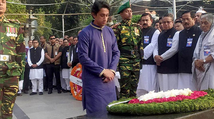 বঙ্গবন্ধুর প্রতিকৃতিতে প্রধানমন্ত্রীর পক্ষে রাদওয়ান মুজিবের শ্রদ্ধা