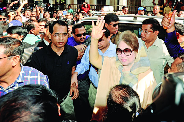 খালেদা জিয়া আদালত থেকে বেরিয়ে যান।