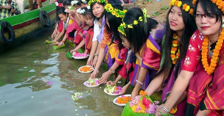 চাকমা সম্প্রদায়ের মানুষ আজ ভোর থেকে পার্বত্য তিন জেলার নদী, ছড়াসহ কাপ্তাই হ্রদে ফুল ভাসিয়েছেন। এতে যোগ দিয়েছেন সব বয়সের হাজার হাজার নারী-পুরুষ। নারীরা ঐতিহ্যবাহী পোশাক পিনোন-হাদি ও পুরুষেরা ধুতি পরে উৎসবে যোগ দেন। চাকমারা বিশ্বাস করেন, এই ফুল ভাসানোর মধ্য দিয়ে পুরোনো বছরের গ্লানি মুছে গিয়ে নতুন বছর বয়ে আনে সুখ, শান্তি ও সমৃদ্ধি। যুগ যুগ ধরে এ উৎসব উদ্যাপন করে আসছে পাহাড়িরা।