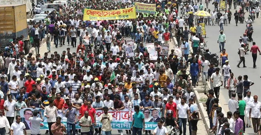 এক দফা দাবিতে রাজধানীর আব্দুল্লাহপুর থেকে বিএনপির পদযাত্রা শুরু