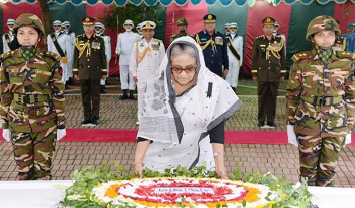 বঙ্গবন্ধুর সমাধিতে ছোট বোনকে সঙ্গে নিয়ে প্রধানমন্ত্রীর শ্রদ্ধা