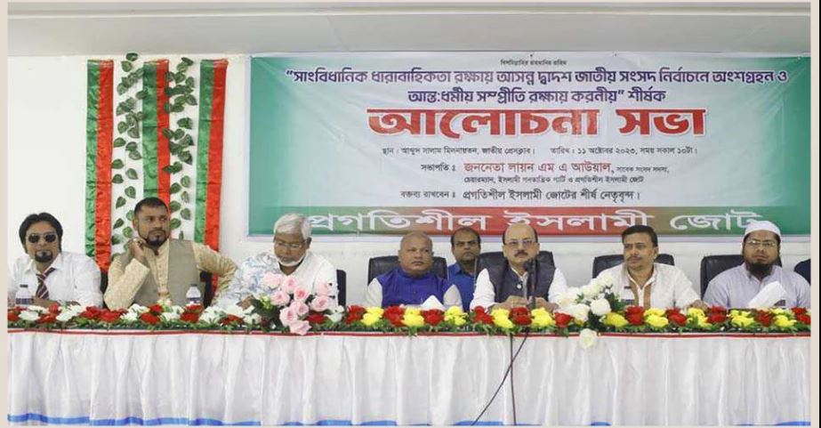 বুধবার জাতীয় প্রেস ক্লাবে প্রগতিশীল ইসলামী জোট আয়োজিত ‘সাংবিধানিক ধারাবাহিকতা রক্ষায় আসন্ন দ্বাদশ জাতীয় সংসদ নির্বাচনে অংশগ্রহণ ও আন্তঃধর্মীয় সম্প্রীতি রক্ষায় করণীয়’ অনুষ্ঠিত এক আলোচনা সভায় সভাপতির বক্তব্যে একথা বলেন সাবেক এই সংসদ সদস্য। সভায় জোটের কো চেয়ারম্যান, সমন্বয়কসহ কেন্দ্রীয় নেতারা বক্তব্য রাখেন।
