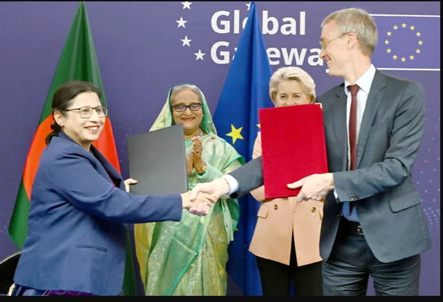 এ সময় প্রধানমন্ত্রী শেখ হাসিনা ও ইউরোপীয় কমিশনের চেয়ারম্যান উরসুলা ভন ডার লেয়েন ব্রাসেলসে ইউরোপীয় কমিশনের প্রধান কার্যালয়ে বাংলাদেশ সরকার ও ইউরোপীয় বিনিয়োগ ব্যাংক (ইআইবি)’র মধ্যে ৩৫০ মিলিয়ন ইউরো অর্থায়ন চুক্তিসহ বেশ কয়েকটি চুক্তি স্বাক্ষর প্রত্যক্ষ করেন।