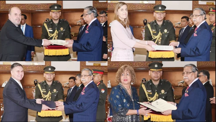 রাষ্ট্রপতি মো. সাহাবুদ্দিনের কাছে বাংলাদেশে মনোনীত সাত দেশের অনাবাসিক রাষ্ট্রদূত নিজ নিজ পরিচয়পত্র পেশ করেছেন।