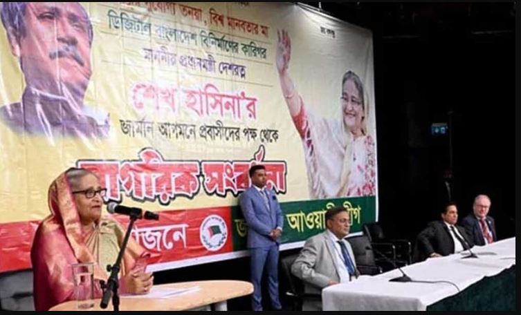 শুক্রবার (১৬ ফেব্রুয়ারি) জার্মানির মিউনিখের হোটেল বার্গারহাউস গার্চিংয়ে প্রবাসী বাংলাদেশিদের আয়োজিত সংবর্ধনায় প্রধানমন্ত্রী দেশবাসীর ভাগ্য নিয়ে যেকোনো ষড়যন্ত্রের বিরুদ্ধে সবাইকে সতর্ক থাকার আহ্বান জানান।