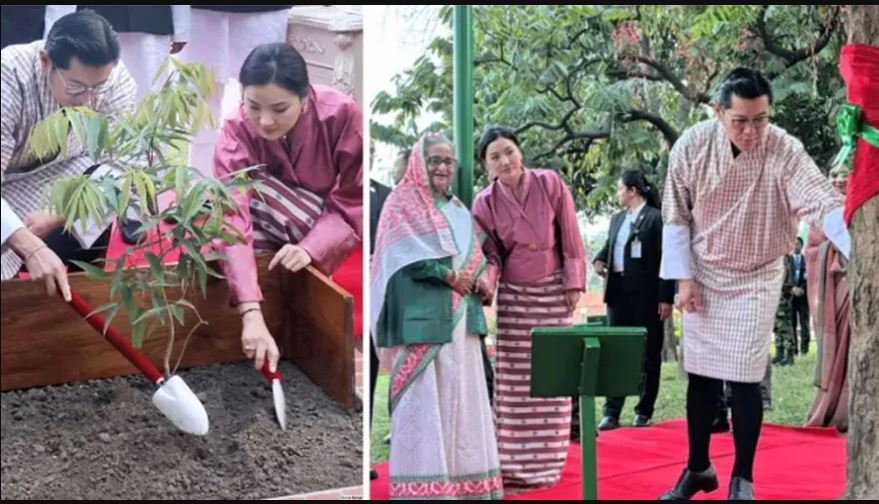 জাতীয় স্মৃতিসৌধে প্রাঙ্গণে ‘নাগেশ্বর চাপা’ গাছের চারা রোপণ ভুটানের রাজার