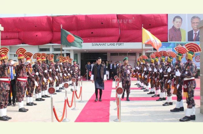 বাংলাদেশে রাষ্ট্রীয় সফরের অংশ হিসেবে বৃহস্পতিবার কুড়িগ্রাম জেলার বিশেষ অর্থনৈতিক অঞ্চল ও সোনাহাট স্থলবন্দর পরিদর্শন করেন ভুটানের রাজা। দুপুরে তিনি সোনাহাট স্থলবন্দরে এসে পৌঁছালে বিজিবি’র রংপুর রিজিয়ন কমান্ডার ব্রিগেডিয়ার জেনারেল খোন্দকার শফিকুজ্জামান রাজাকে ফুলেল শুভেচ্ছা ও উষ্ণ অভ্যর্থনা জানান।