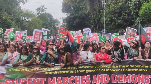 স্বাধীন রাষ্ট্র ফিলিস্তিনের স্বীকৃতি এবং নিরীহ ফিলিস্তিনিদের ওপর ইসরাইলি বর্বরতার বিরুদ্ধে বিশ্বব্যাপী ছাত্রসমাজ, শিক্ষক ও সচেতন নাগরিকদের যে আন্দোলনের সূচনা হয়েছে তার প্রতি সংহতি প্রকাশ করে বিশাল পদযাত্রা ও ছাত্র সমাবেশ করেছে বাংলাদেশ ছাত্রলীগ।