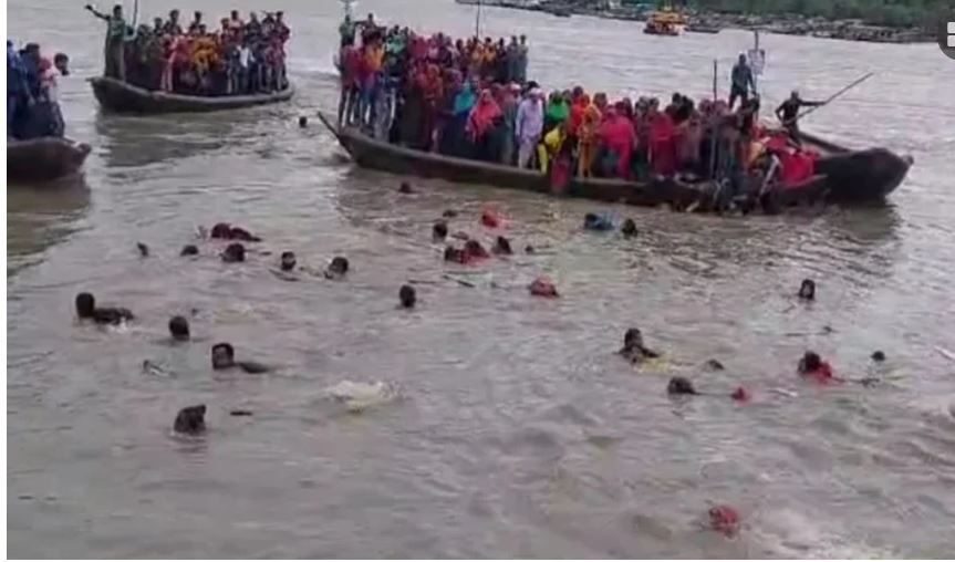 মোংলা নদীর ঘাটে অতিরিক্ত যাত্রী তোলার কারণে নৌকা ডুবি