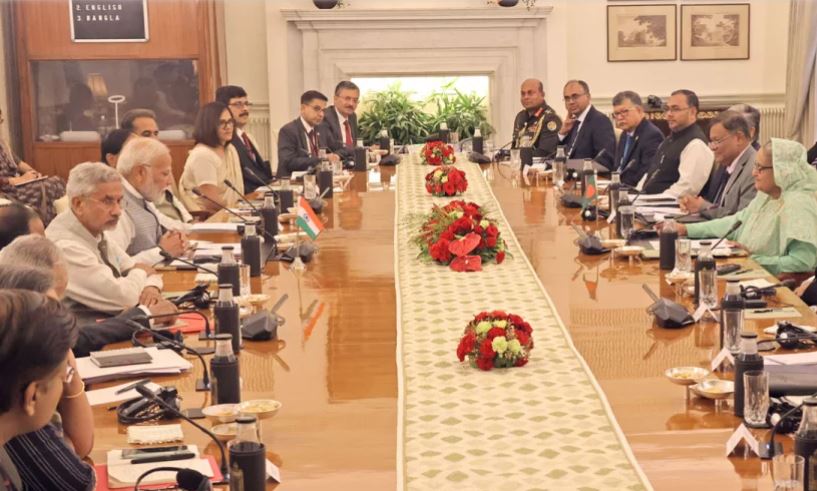 নয়াদিল্লির হায়দ্রাবাদ হাউসে দ্বিপাক্ষিক বৈঠকে বসেছেন প্রধানমন্ত্রী শেখ হাসিনা ও ভারতের প্রধানমন্ত্রী নরেন্দ্র মোদি