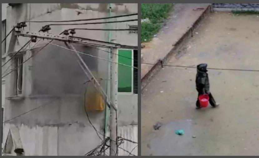 তৃতীয় তলার ফ্ল্যাটে বিকট শব্দে বিস্ফোরণ হয়। এসময় ফ্ল্যাটের জানালার কাঁচ ভেঙে নিচে পড়তে দেখা যায়। ছবি: ভিডিও থেকে নেওয়া