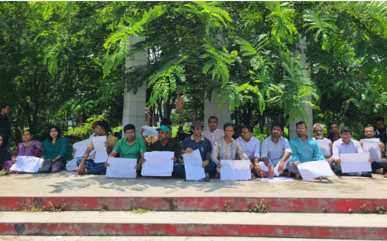 এ সময় ছিলেন বিশ্ববিদ্যালয়ের শিক্ষক সমিতির সভাপতি অধ্যাপক ড. বিজয় মোহন চাকী, সাধারণ সম্পাদক আসাদ মন্ডল, শিক্ষক মতিউর রহমান, ড. তুহিন ওয়াদুদ, উমর ফারুক, শাহীনুর রহমান, আপেল মাহমুদ, তাবিউর রহমানসহ বিভিন্ন বিভাগের শিক্ষকরা।
