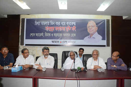 তিন বছর ধরে কারারুদ্ধ মাহমুদুর রহমানের মুক্তির দাবিতে এই সংবাদ সম্মেলনের আয়োজন করে আমার দেশ পরিবার।