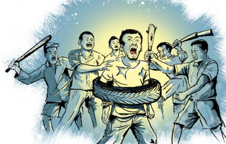 এক দল লোকের জোর করে নিজের হাতে বিচার তুলে নেওয়ার ঘটনা