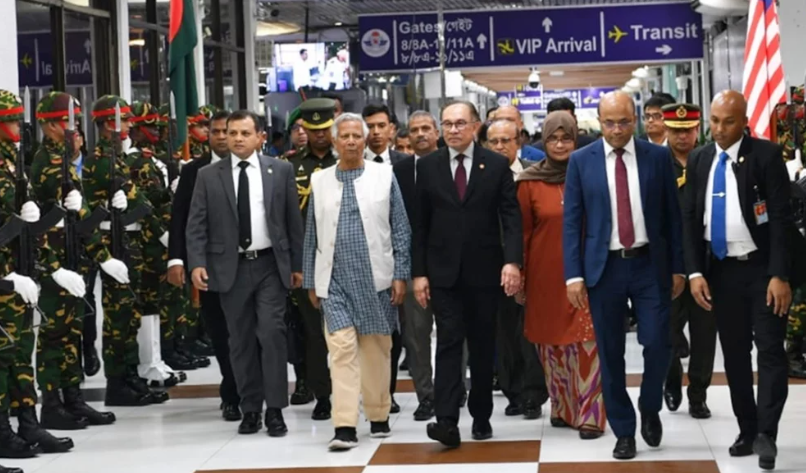 সংক্ষিপ্ত সফরে ৫৮ সদস্যের প্রতিনিধিদল নিয়ে ঢাকায় ঘুরে গেলেন মালয়েশিয়ার প্রধানমন্ত্রী আনোয়ার ইব্রাহিম। হযরত শাহজালাল আন্তর্জাতিক বিমানবন্দরে তাকে স্বাগত জানানোর পর এবার বিদায় জানিয়েছেন অন্তর্বর্তী সরকারপ্রধান ড. মুহাম্মদ ইউনূস।
