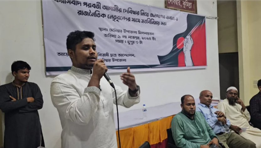 হাসনাত বলেন, দেবিদ্বারে কোনোভাবেই চাঁদাবাজিকে স্থান দেওয়া হবে না। এটি রাজনৈতিক ও সামাজিকভাবেই সবাইকে মোকাবিলা করতে হবে। দেবিদ্বারের অবস্থা এমন হয়েছে, যারা রাজনীতিতে আসছে তারা বিদেশে থাকছে এবং দেশে এসে পৈতৃক কোটায় ক্ষমতায় আসছে। তাদের নিজেদের মধ্যে পাতানো বিরোধী বিরোধী খেলা আছে। অর্থাৎ সরকারে গেলেও আমার পরিবার, বিরোধী দলে গেলেও আমার পরিবার। যারা গত ১৬ বছর মানুষের ওপর জলুম নির্যাতন করেছেন তাদের সমঝোতার মাধ্যমে মামলা থেকে বাদ দেওয়া হয়েছে। আমি আপনাদের নিশ্চয়তা দিচ্ছি, আপনারা যারা নির্যাতনের শিকার হয়েছেন আপনারা তাদের বিরুদ্ধে মামলা করবেন এবং আইনি সহায়তা নেবেন। এ ক্ষেত্রে যারা বাধা দেবে তাদের নামগুলো প্রকাশ করবেন।