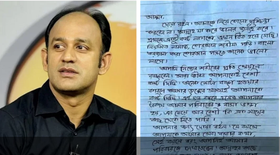 মায়ের কাছে লেখা চিঠিতে ব্যারিস্টার সুমন