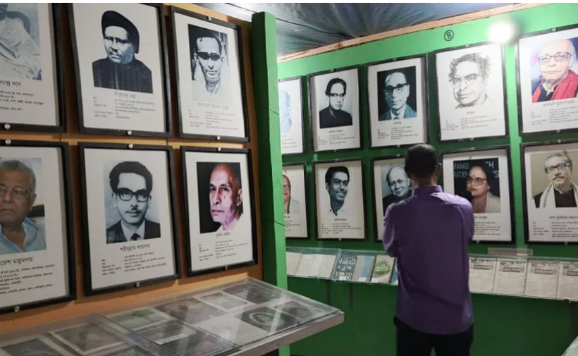 একদিকের দেয়ালে টাঙানো শতবর্ষী পুরানো পত্রিকা। পাশেই বিখ্যাত লেখক ও কবিদের বই, পুরোনো ম্যাগাজিন, ছবিসহ জীবনী। সঙ্গে আছে দুর্লভ সব চিঠিপত্র।